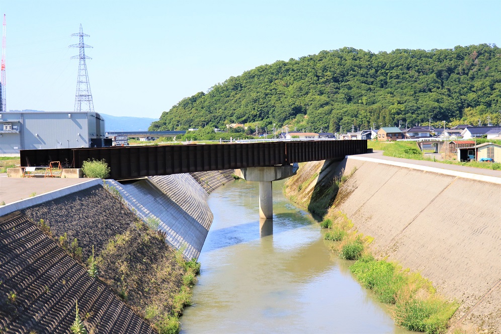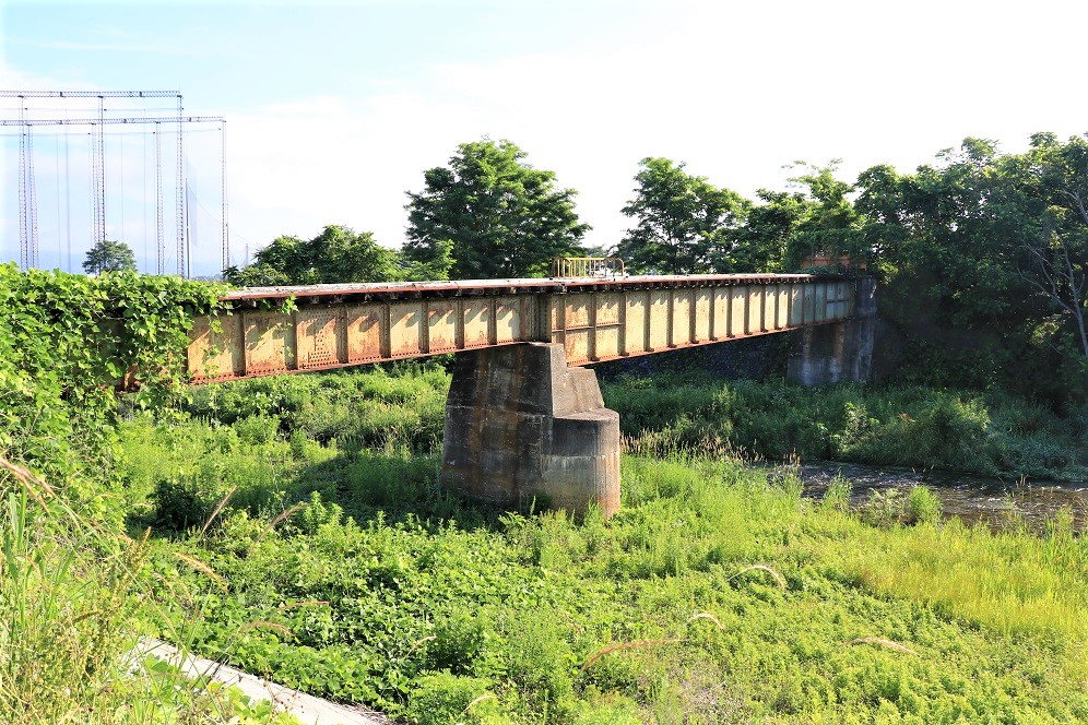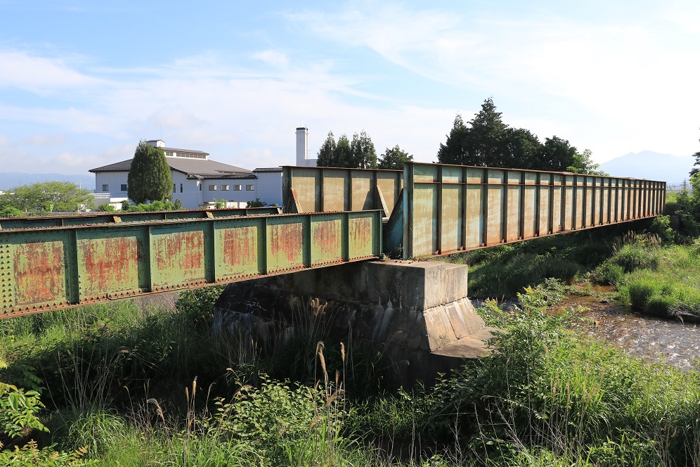 屋代線跡を辿って南西方向へ進んでいくと、2本の川に突き当ります。千曲川支流の百々川と鮎川です。当時の鉄路はこの川を鉄橋で越えていくわけですが、なんとここに二本の鉄橋がそのまま残されています。