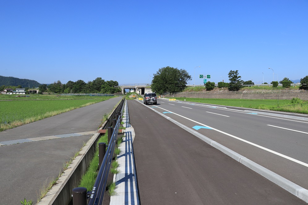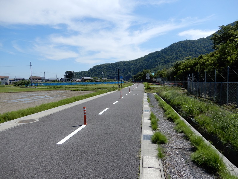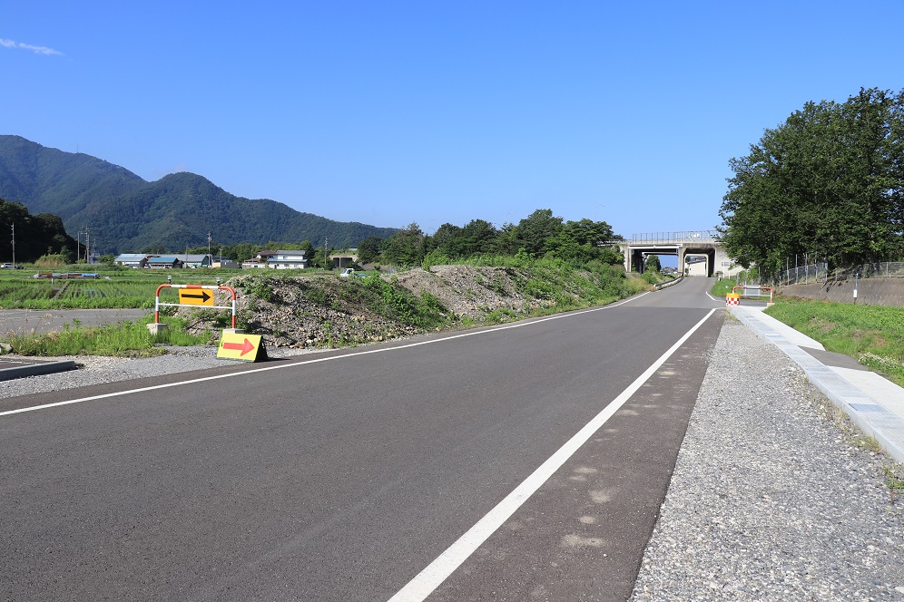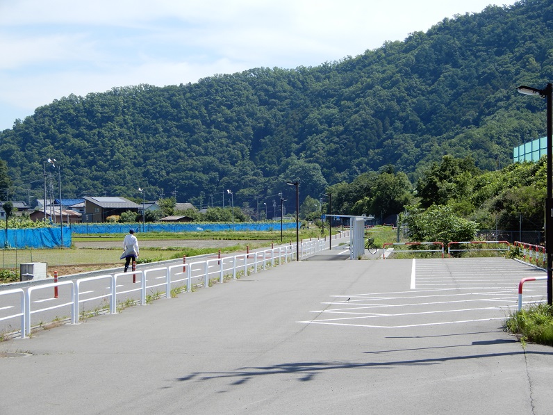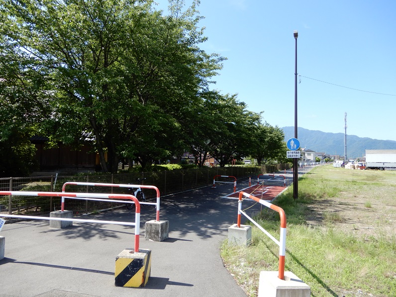 この綿内駅から2つ隣の若穂駅までの間、路盤跡はサイクリングコースとして再整備されています。廃線跡を利用したサイクリングコースは全国にありますが、もともと鉄道は急な勾配を避けて敷設されますので、アップダウンの少ない鉄道跡地をサイクリングコースに転用すれば、自転車にとっても快適な走路となります。
