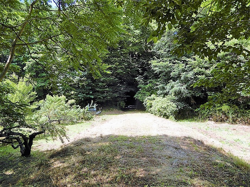 新緑生い茂る6月だというのに、トンネルへ至る路盤跡は綺麗に刈り払いがされています。先ほどの築堤跡といい、現在の屋代線は完全放置の廃線というわけではなく、どうやら今でも誰かの手によってしっかりと管理されているようです。探訪時は、ここに限らず屋代線の路盤跡はほぼ全線に渡ってきれいに刈り払いが行われていました。