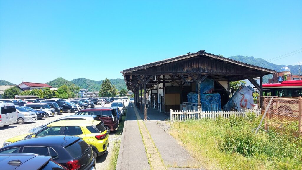 ここ綿内駅はかつて廃線後もしばらくは木造駅舎が残っていたようですが、2020年に老朽化などを理由に解体されてしまいました。現在では更地となっていて、駅跡地は駐車スペースになっています。