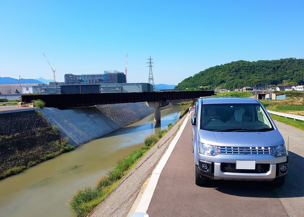 屋代線の跡を辿って、上信越自動車道の須坂長野東インターチェンジ付近にやってきました。この付近は、高速インターの近くということもあって、やたらと物流センターが目立ちます。新しく何かを建てている様子も見られましたが、これも物流関連の施設なのでしょうか?